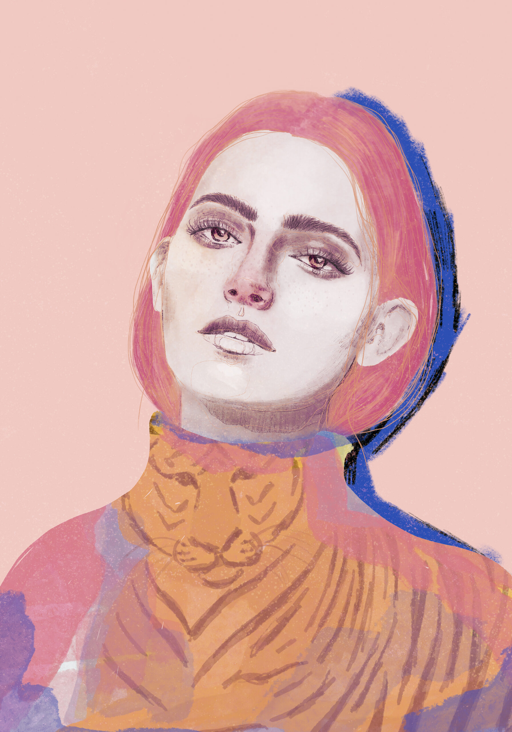 Chica tigre, técnica mixta
